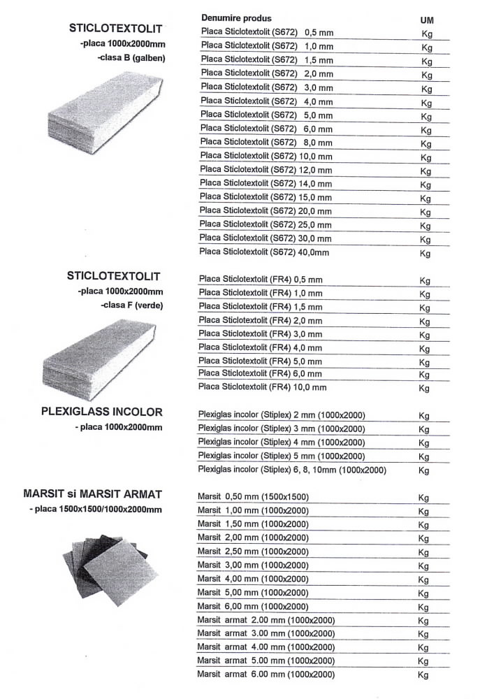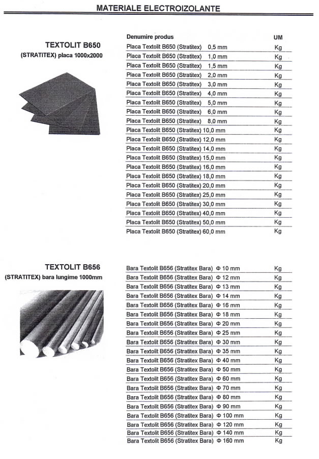 Oferta Sirmalex Total Grup de materiale electroizolante cuprinde: Textolit B650, Textolit B656, Sticlotextolit clasa B si F, Pexiglas incolor,